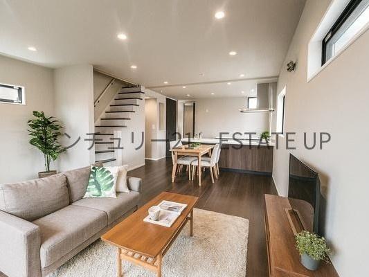 リビングはゆとりある広さで、家族みんなが自然と集まる心地よい空間。対面式キッチンで会話も弾みます。