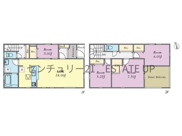 階数 区分 広さ 1F LDK 18.0帖 1F 洋 3.0帖 2F 洋 7.5帖 2F 洋 6.0帖 2F 洋 5.2帖 - 駐車場