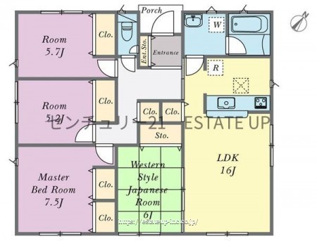 階数 区分 広さ 1F LDK 16.0帖 1F 和 6.0帖 1F 洋 7.5帖 1F 洋 5.7帖 1F 洋 5.2帖 - 駐車場