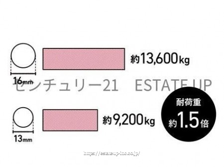 全戸の基礎の主筋に16mm鉄筋を採用。16mm鉄筋を用いて子会社によって生産されるユニット鉄筋を使用した基礎は、強度比較試験において建築基準法で定められた配筋による基礎の強度を上回っています。 構造・工法・仕様