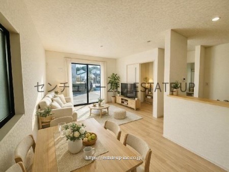 南向き×高台のオール電化住宅。省エネ性能★★★★で光熱費も節約。LDK15帖以上の明るいリビングと、リビング階段・充実収納の家族想いの設計。錦江台の閑静な街並みに佇む、心地よい3LDK新築邸宅です。