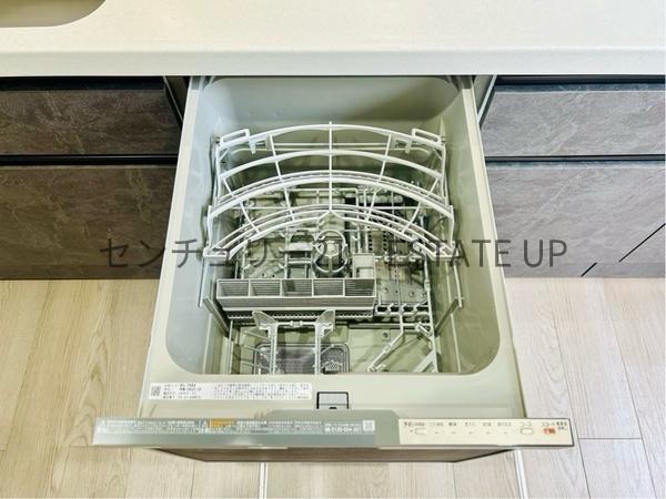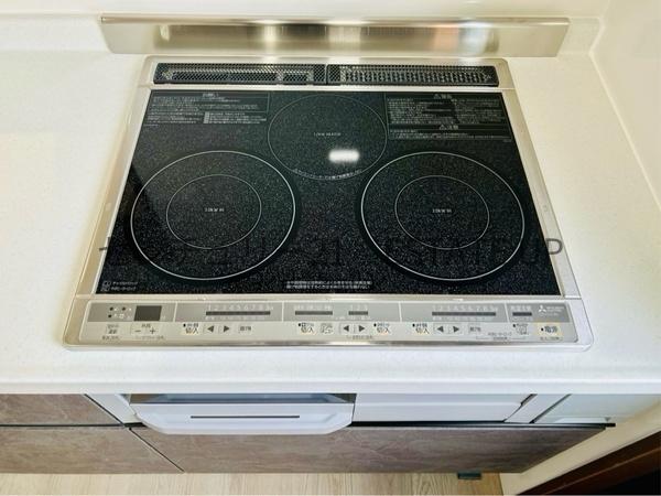 カウンターキッチン+3口コンロ+食洗機付きで調理から後片付けまで効率的。